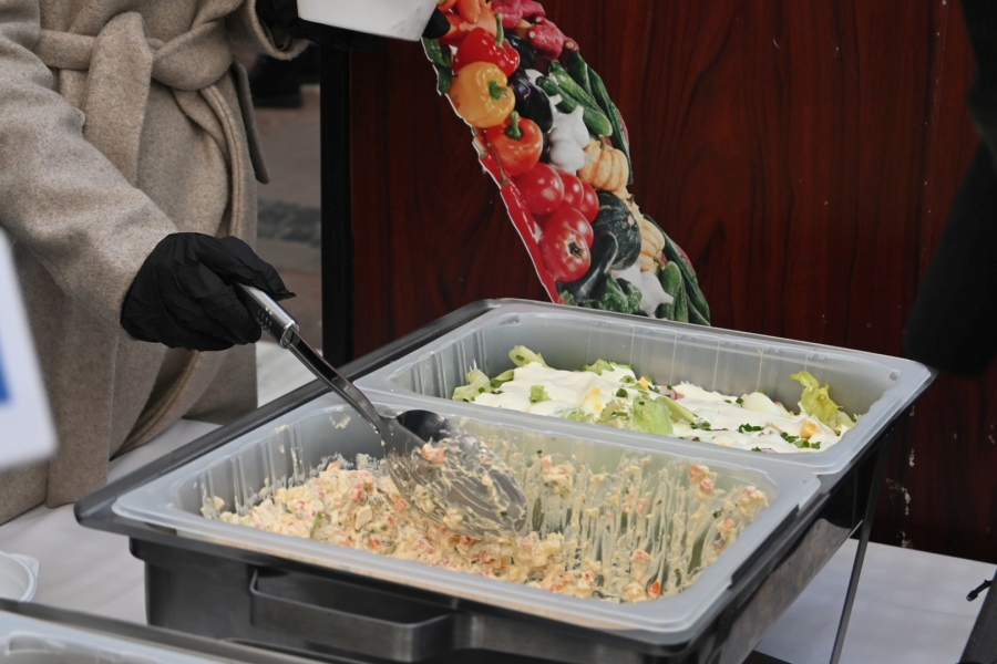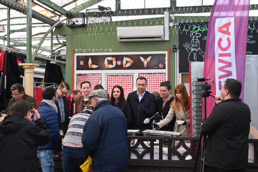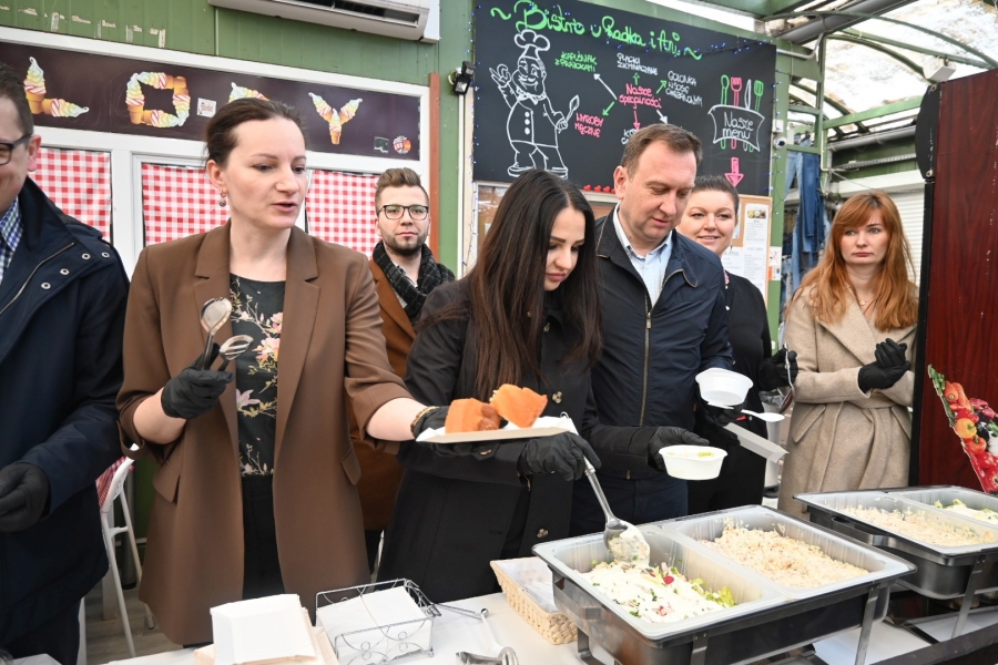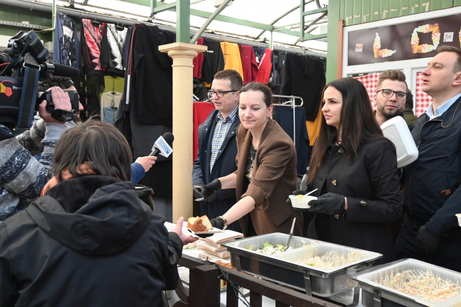 Wśród świątecznych dań nie zabrakło żurka z jajkiem, sałatki jarzynowej, sałatki wielkanocnej oraz typowych ciast wielkanocnych. Poczęstunek, jak co roku, cieszył się dużym zainteresowaniem łodzianek i łodzian, dokonujących ostatnich przedświątecznych zakupów.