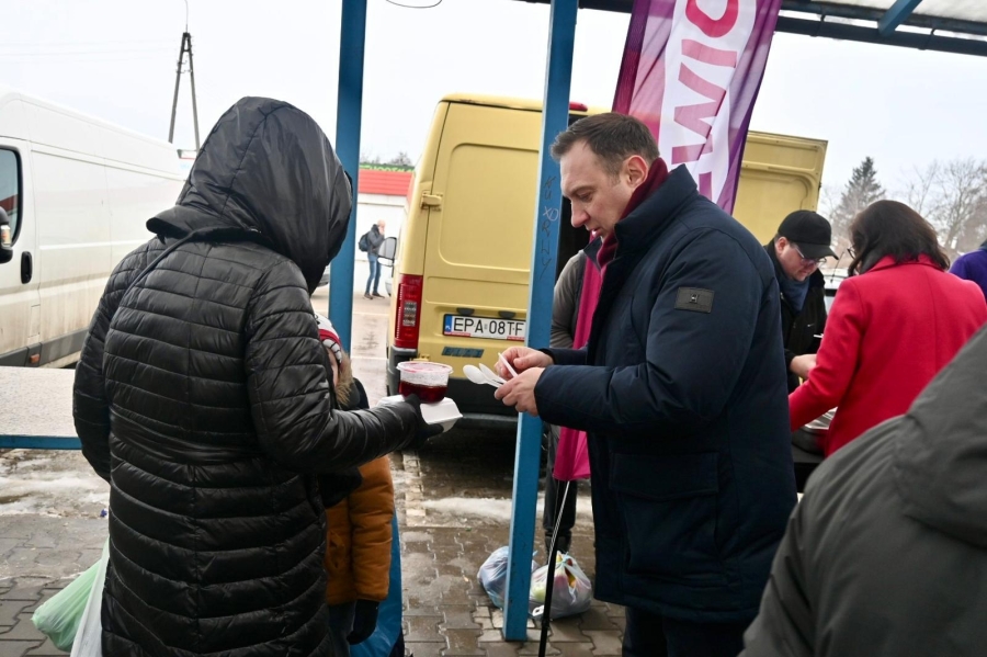 "To już stało się pewnego rodzaju naszą tradycją lewicową, że po prostu dzielimy się posiłkiem. W Łodzi dzielimy się już od kilkunastu lat, ale kilka lat temu rozpoczęliśmy taką akcję w całym województwie łódzkim. W poprzednich latach byliśmy w Zduńskiej Woli, Sieradzu, Piotrkowie Trybunalskim, Tomaszowie Mazowieckim i innych miastach, a dzisiaj naszą wyprawę zaczęliśmy od Skierniewic, a teraz jesteśmy w Rawie Mazowieckiej i będziemy jeszcze w Tomaszowie Mazowieckim. Dzielimy się posiłkiem, który składa się z ciepłego barszczu z uszkami, wegetariańskiej kapusty z grochem, pierogów z kapustą i grzybami, a także słodkiego ciasta. Chcemy tym też wskazać na pewien problem. Problem ubóstwa, który rozpowszechnia się w Polsce. Z raportu wynika, że poziom ubóstwa w Polsce rośnie. Chcemy uczulić wszystkich tych, którzy mogą sobie pozwolić na to, żeby podzielić się posiłkiem lub czymkolwiek innym, chociażby dobrym słowem, chociażby jakimś prezentem, żeby również dzielili się z innymi, bo dzielenie się daje radość nam wszystkim" - stwierdziła posłanka Anita Sowińska.